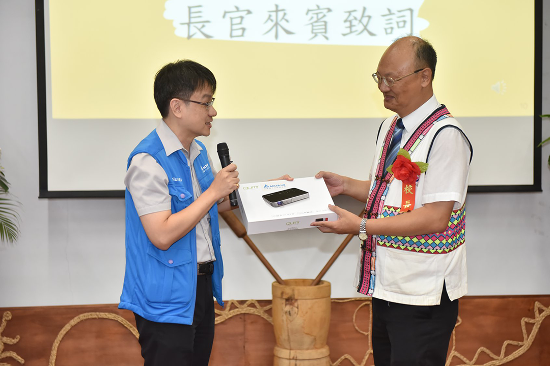 前去獻上祝福的台達基金會陪著學校自2009年走過重建過程,這十年一趟又一趟往部落的山路,見證學生人數從不滿百人到現在加倍成長,歸功於校方和家長們對教育的用心和支持;外界難以想像的是,連續三年那瑪夏民權國小都勉力保持著淨零耗能的佳績,總用電量並沒有相對增加;好天氣的時候,22.5KW 的太陽能板仍能在好天氣時供應充足的綠電,節能文化需要積累和堅持,台達基金會、工程師與志工團隊年年陪伴,在同學畢業的時刻,溫暖的回憶點滴在心頭。除此之外,每年聖誕節上山時,校長及老師都會熱情的接待,並和志工們一起揭開那瑪夏志工能源課程的序幕。為此,基金會執行長張楊乾先生也特別致贈Q38投影機給即將轉調他校的吳國正校長,謝謝他對環保的熱誠和盡心。