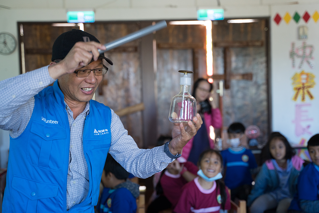 最令我印象深刻的是,大家一起用演戲的方式呈現《那瑪夏的圖書館》這本故事書給幼稚園的學生們聽,在演出的過程中我看見了孩子對這本書的熱情跟與對這間學校的感情,唸完故事書我們帶著幼兒園的孩子們介紹了幾個在故事書裡出現的定點,孩子們露出好奇的眼神時,相信自己的努力在學弟妹小小的心靈當中,也種下了綠能的種子。