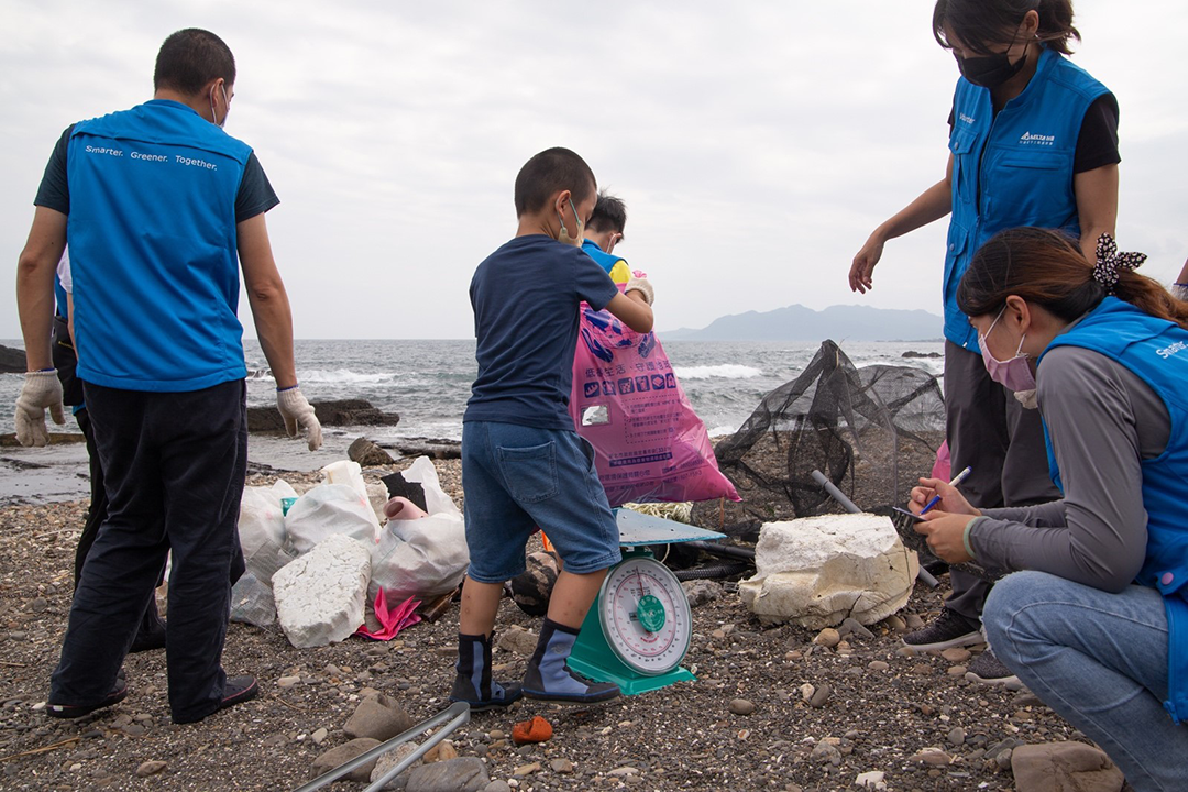 經過志工們多次來回撿拾,短短一小時內,便整理出近四十公斤的垃圾量,但最令人佩服的便是團隊中的「小小志工」,這些志工多為國小三、四年級的學生,個頭雖然不高,卻勤奮地穿梭於岸邊的礁岩,且每次帶回來的垃圾袋總是 “滿載而歸”。