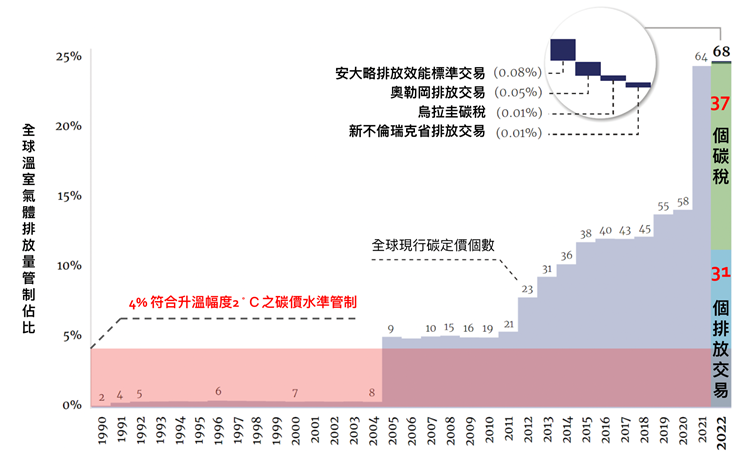 因應全球對碳價的管制,特別是歐盟即將啟動的碳邊境調整機制(俗稱碳關稅),台灣將於《氣候變遷因應法》草案,以『碳費先行』,並逐步朝向『碳稅或排放交易』的碳定價模式。然而,修法過程中充斥著企業『缺綠電、缺碳權』的聲音,質疑『碳費』僅為增加政府收入而不具備成本效益,希望政府改採『排放交易』並建立『碳權交易市場』,以回應企業龐大的碳權需求。 然而,這樣的呼籲到底是否與國際淨零趨勢一致,或只是企業淨零漂綠的包裝?本文就以最新的世界銀行《2022年度碳定價趨勢與現況報告》,針對『產業新缺——第七缺:碳權』進行綠色查核。