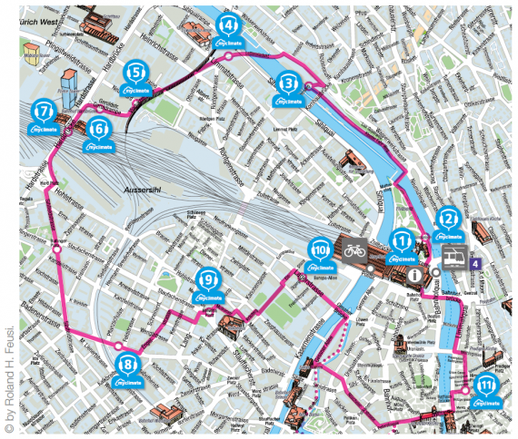 城市語音導覽是由蘇黎世旅遊局、瑞士氣候保護非營利組織(myclimate),及能源相關機構共同製作,步行距離總長8公里,一個人悠哉地走走停停,所花時間大約僅2.5小時。