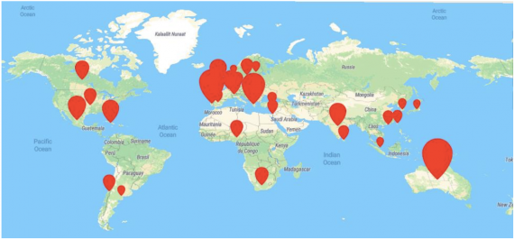 國際營養師協會聯盟營養師分布之區域,其中也包含台灣(圖:ICDA)