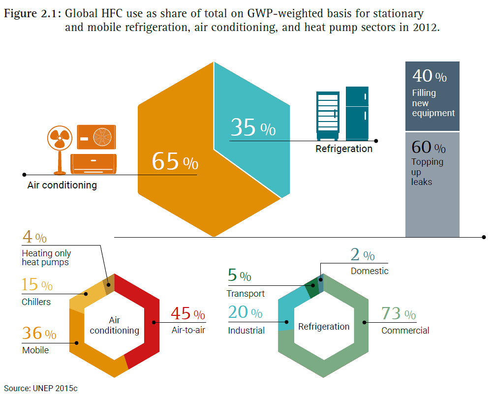HFC冷媒有65%用在空調系統(圖:Cooling Emissions and Policy Synthesis Report)