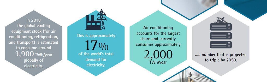 國際能源署(IEA)今年發布了《冷卻排放和政策綜合報告》(Cooling Emissions and Policy Synthesis Report),並指出,若目前的碳排放速率不變,將使全球溫度上升3°C,空調系統的需求將會日漸增加。此外,儘管全世界約有36億台不同用途的空調系統在使用中,但全球仍有超過10億人口缺少空調設備。在愈來愈熱的未來,將會對這些人造成危害。由此來看,空調議題已上升至人權層次,不可忽視。