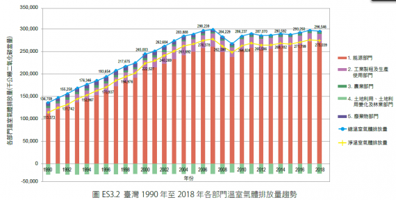 台灣各部門溫室氣體排放量趨勢(圖:環保署,2020我國國家溫室氣體排放清冊報告)