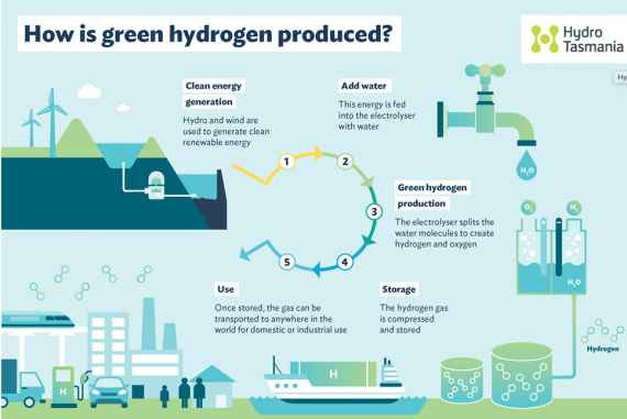綠色氫能的產生過程。圖片來源:Hydro Tasmania