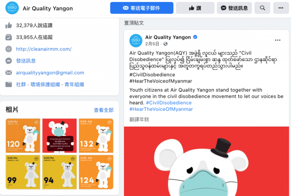 Air Quality Yangon監測仰光空氣品質,促使政府透明化空氣品質資訊(圖:截自Air Quality Yangon粉絲頁)