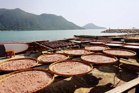 香港大澳,漁民在港邊日曬自製的蝦膏。圖片來源:方畢可, CC0, via Wikimedia Commons
