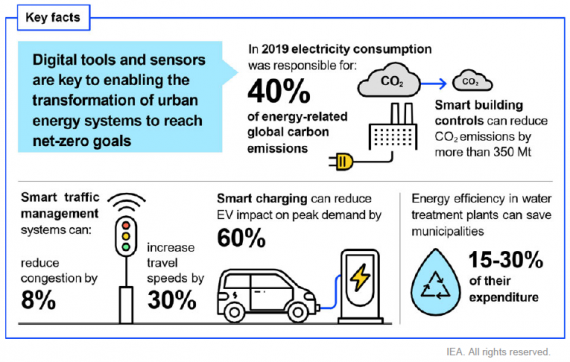 利用數位工具能幫助城市邁向零碳目標(來源:IEA)