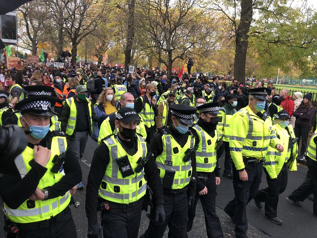 蘇格蘭星期五未來日的遊行抗議整體氣氛平和,除了隊伍行進中不時呼喊口號要求氣候正義,以及沿途部分群眾利用各式樂器彈奏音樂外,並沒有發生特別的衝突事件。