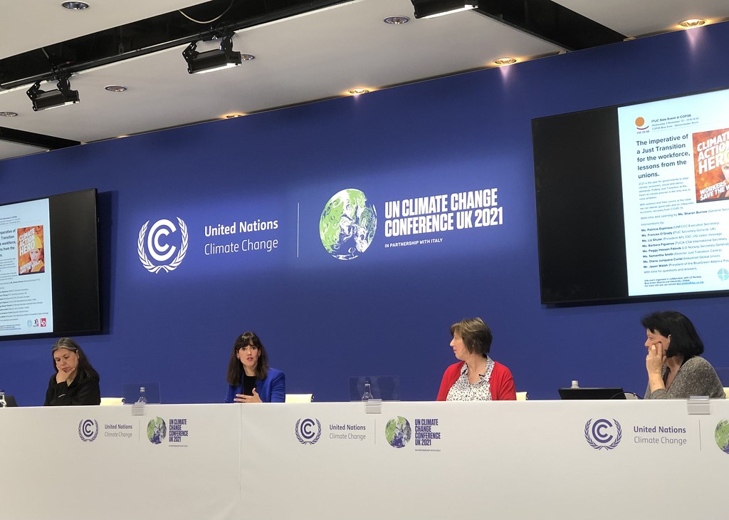 國際工會聯合會(ITUC,簡稱國際工聯)秘書長巴洛(Sharan Burrow)在第26屆聯合國氣候大會(COP26)的一場週邊會議指出,計畫、信任、透明是邁向公正轉型的基礎,公正轉型必須要有公司、政府、工會的參與,且必須要可以對勞工解釋轉型後會發生什麼事,因此一切都需要有計畫,勞工必須對決策階層有信任基礎,且計畫必須是透明的,否則一切就無法進行下去。
