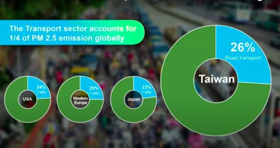 世界許多國家的碳排放,有4分之1來自運輸部門。(圖片來源:台達基金會簡報)