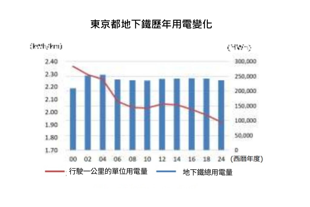 東京都地下鐵歷年用電變化。圖片來源:零碳排都廳計畫