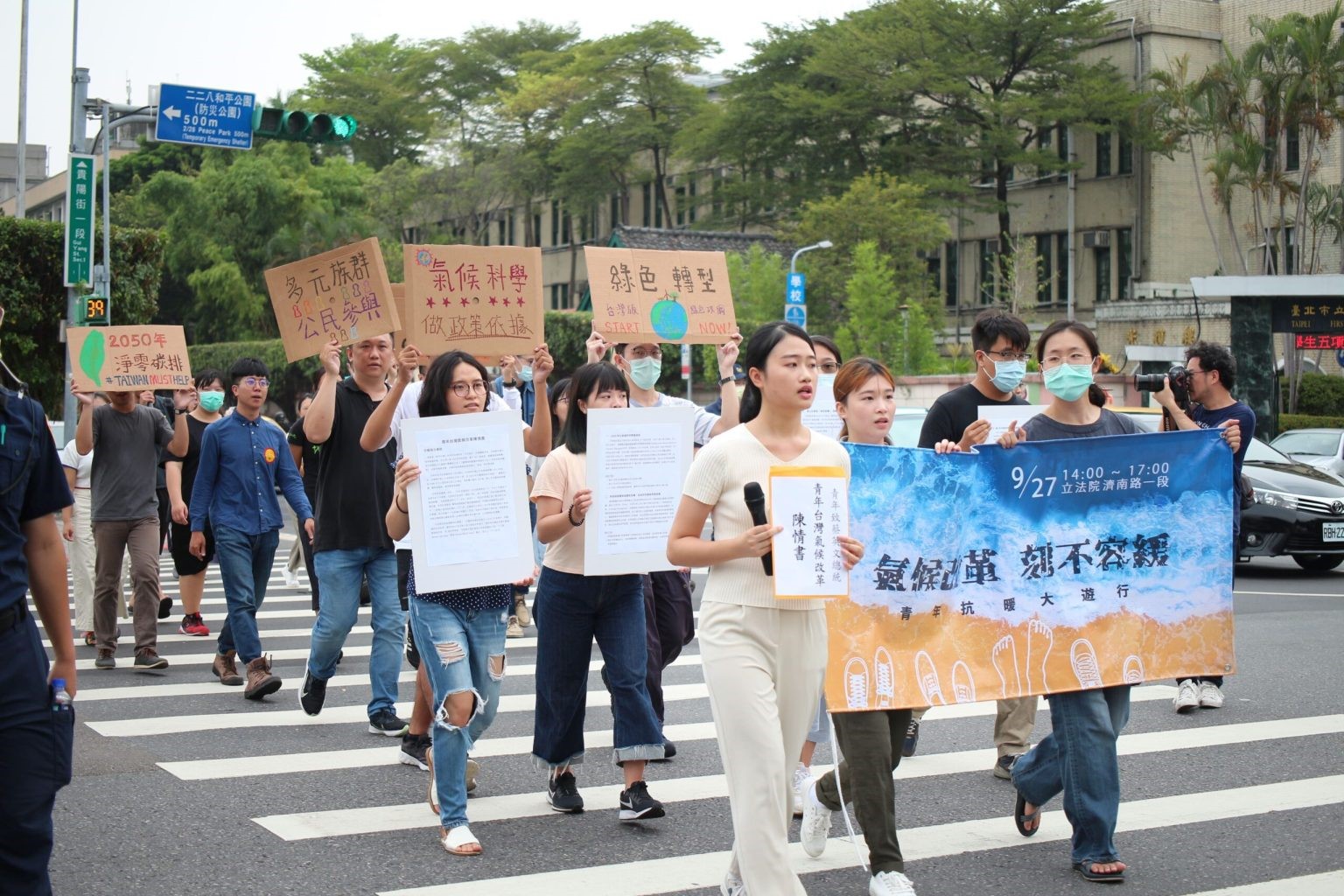 兒少、青年團體與環保團體前往總統府陳情,齊呼「氣候改革,刻不容緩」。圖片來源:台灣青年氣候聯盟提供
