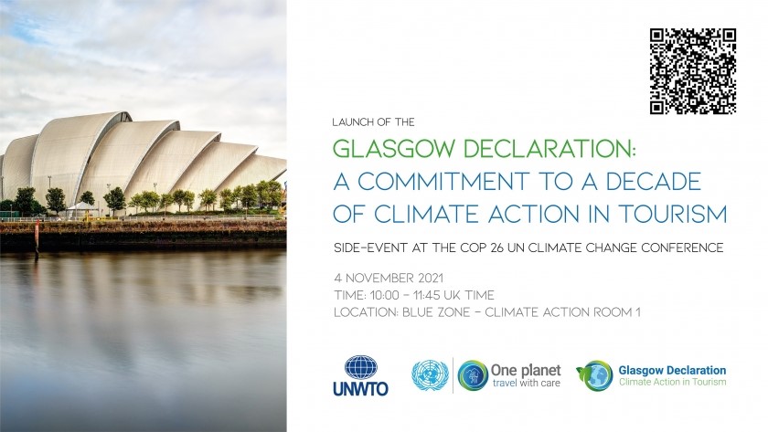 第26屆聯合國氣候大會有300多家旅遊業共同簽訂《格拉斯哥旅遊業氣候行動宣言》,目標要在未來十年內將碳排減半,並盡速於2050前達到淨零排放。圖片來源:UNEP