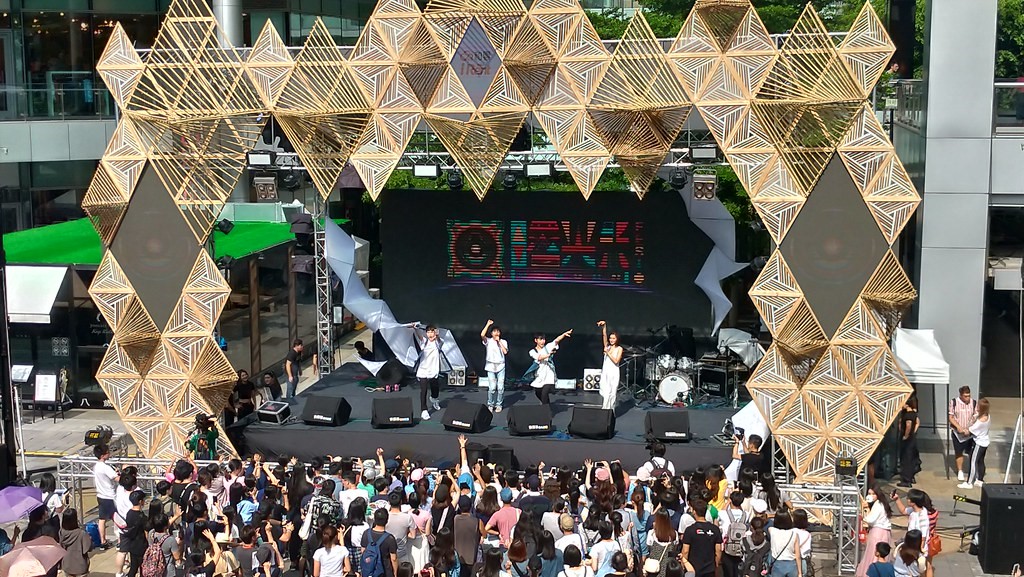 曙光祭的舞台以木材、竹片搭建,並重複使用呼應環保自然的永續理念。攝影:孫文臨