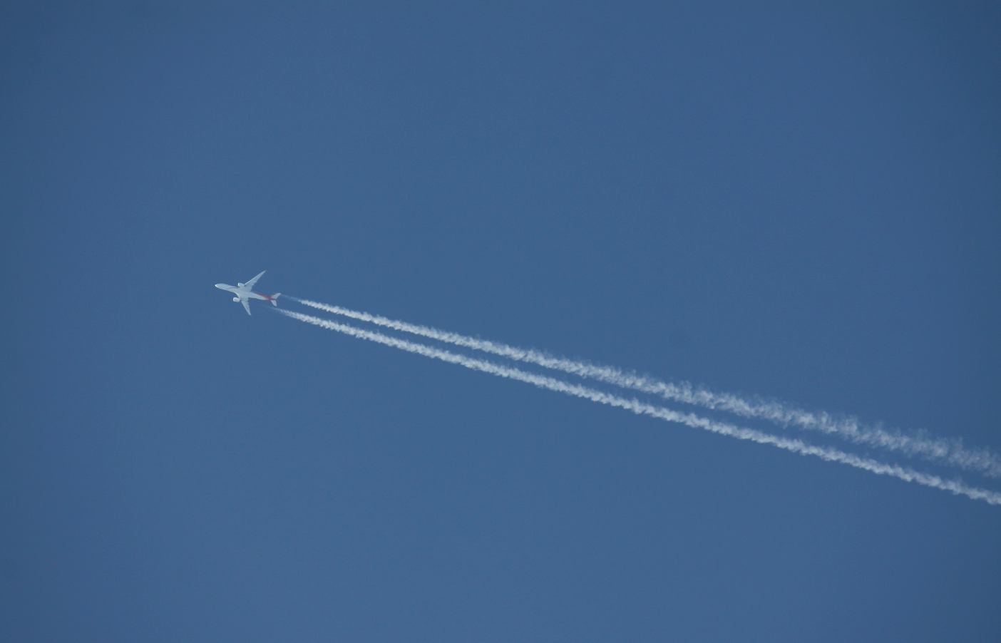 飛機在高空排放廢氣、大量穿越氣層,會影響其他氣體與污染物的濃度。圖片來源:~ kyu/flickr (CC BY-ND 2.0)
