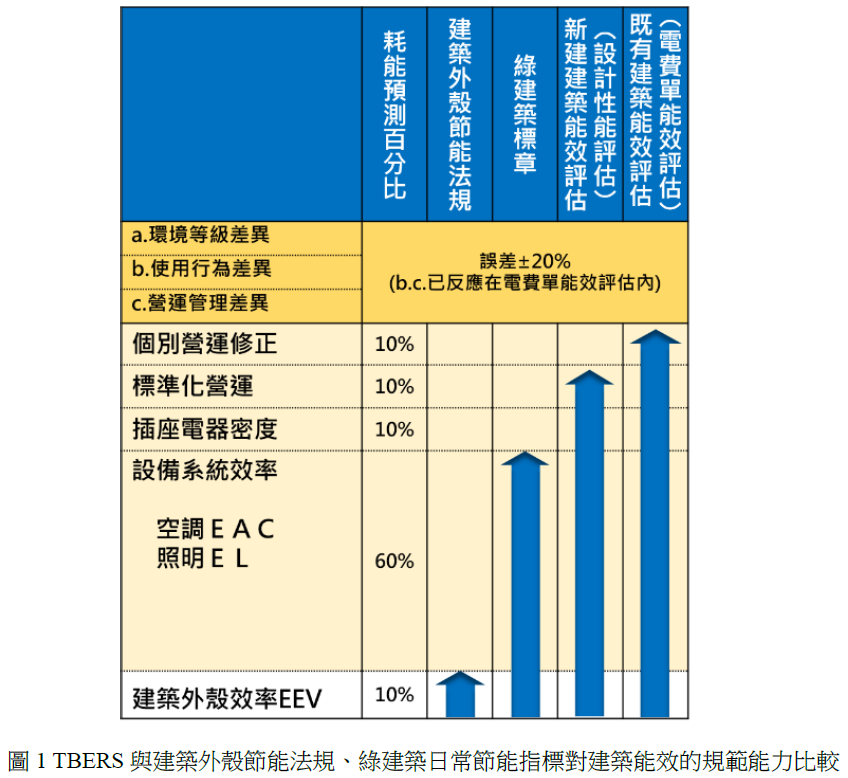 不同法規對於建築能源規範的能力比較。 (來源:內政部)
