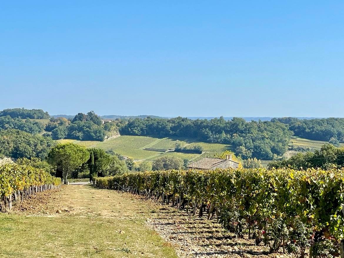 暖陽斜斜灑落在波爾多山坡的葡萄園上,陳子倩分享葡萄酒業的酸甜苦辣。圖片來源:陳子倩提供