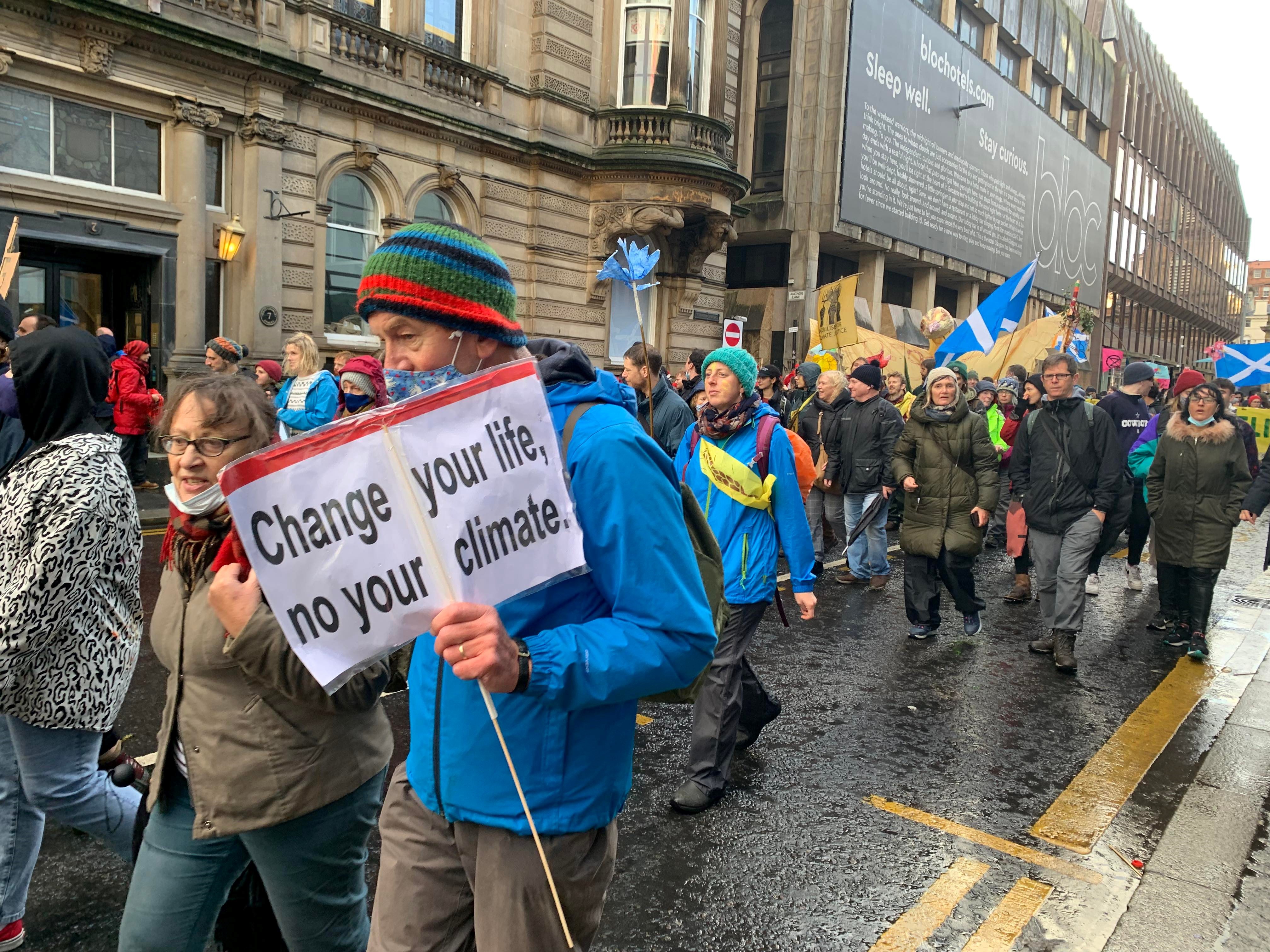 2021年英國格拉斯哥氣候大會召開時,環保團體在街頭遊行呼籲展開氣候行動。圖片來源:高宜凡提供。