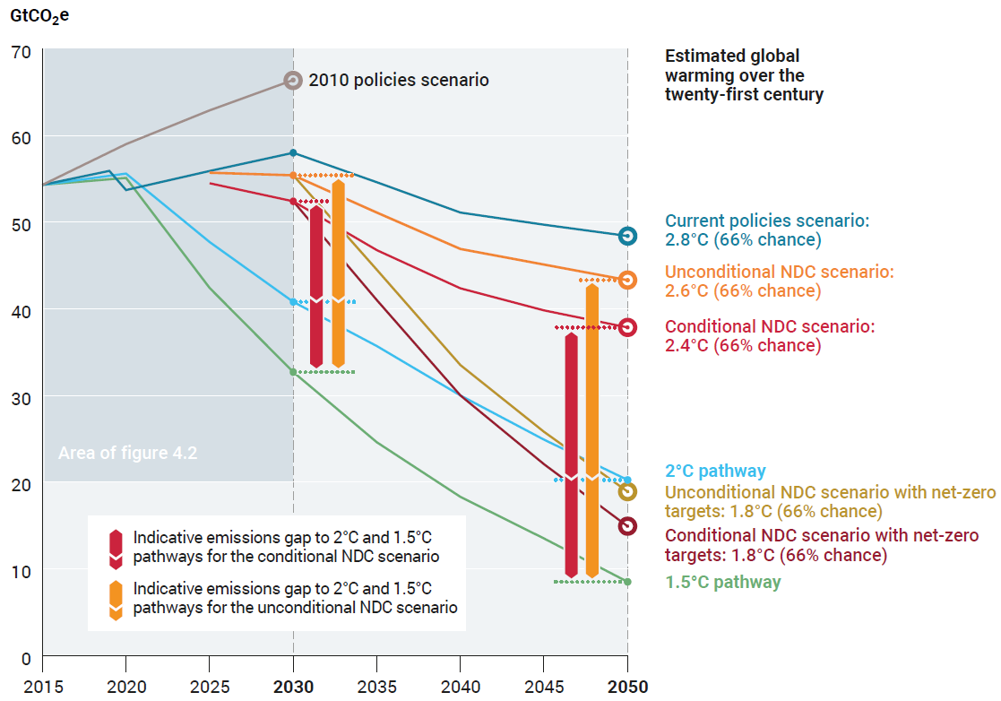 2030及2050年的排放差距仍然巨大。[註](來源:UNEP)
