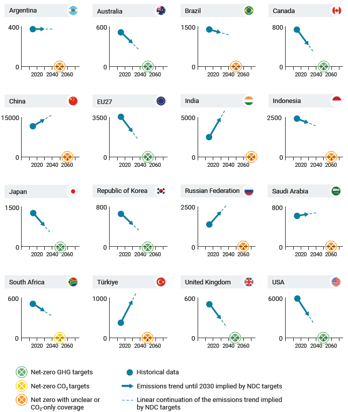 儘管佔全球排放量10%的35個國家,碳排狀況已經達到頂點。但俄羅斯、土耳其、中國、印度等大國,2030年之前仍將持續走高,不利全球朝向淨零。
