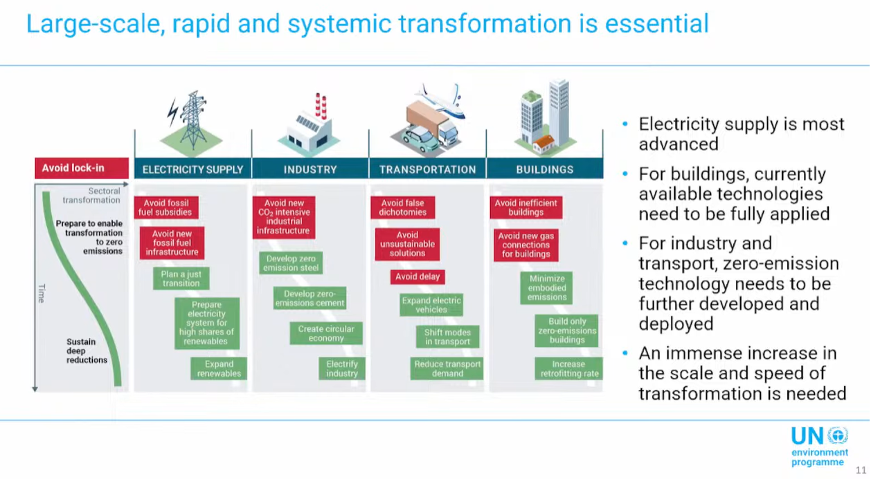 針對四大部門的轉型方針建議。 (來源:UNEP YouTube)