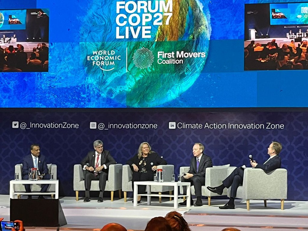 氣候大會COP27會場上,先行者聯盟增65家企業,總市值達8兆美元的大聯盟,將透過綠色採購促成難減碳產業的低碳技術。圖片來源:ReNew Power臉書
