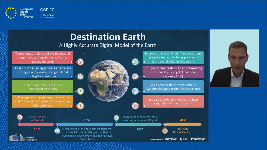 歐盟在COP27氣候會議上分享數位孿生計畫進展。(圖片: YouTube)
