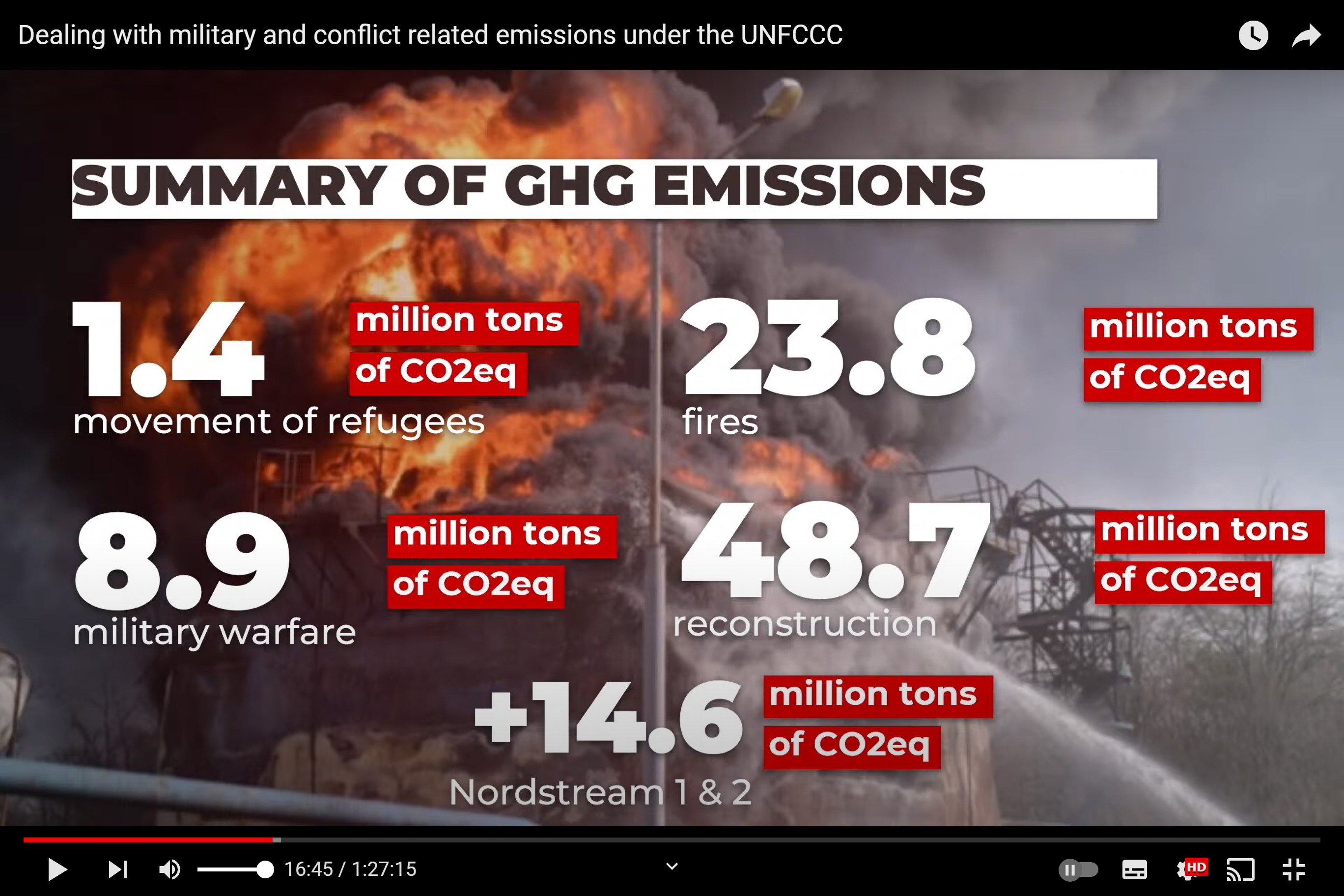 戰爭排放量該怎麼算? 目前還沒辦法精準回答,不論是《巴黎協定》的框架、或是近三千頁的IPCC AR6報告內容,都忽略了戰爭的衝擊。也因此才有了這場敦促UNFCCC發展戰爭排放量計算法的周邊會議。