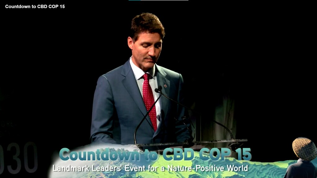 9月22日,加拿大總理杜魯多(Justin Trudeau)出席舉辦於紐約的《領袖自然宣言》「COP15倒數計時:邁向自然增值的領袖會議」表示本次COP15其中兩大重點,包含2030年前停止並扭轉生物多樣性損失,以及2030前至少守護全球30%的海洋及陸地。圖片來源:擷取自《領袖自然宣言》線上記者會畫面