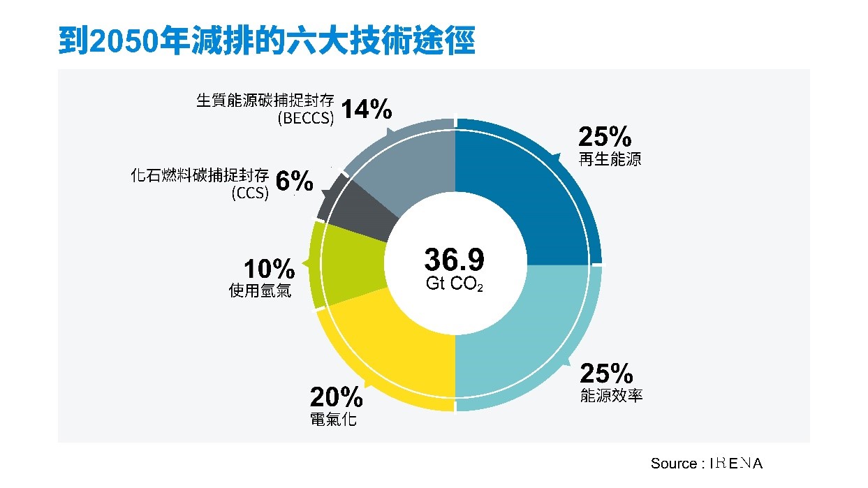 國際再生能源署(IRENA)發表的《2022能源轉型展望:1.5度C路徑》,列出能源轉型過程不可或缺的6大技術途徑:再生能源、能源效率、電氣化、使用氫氣、化石燃料與生質能源的碳捕捉封存,值得在這條路上匍匐前進的台灣借鏡。