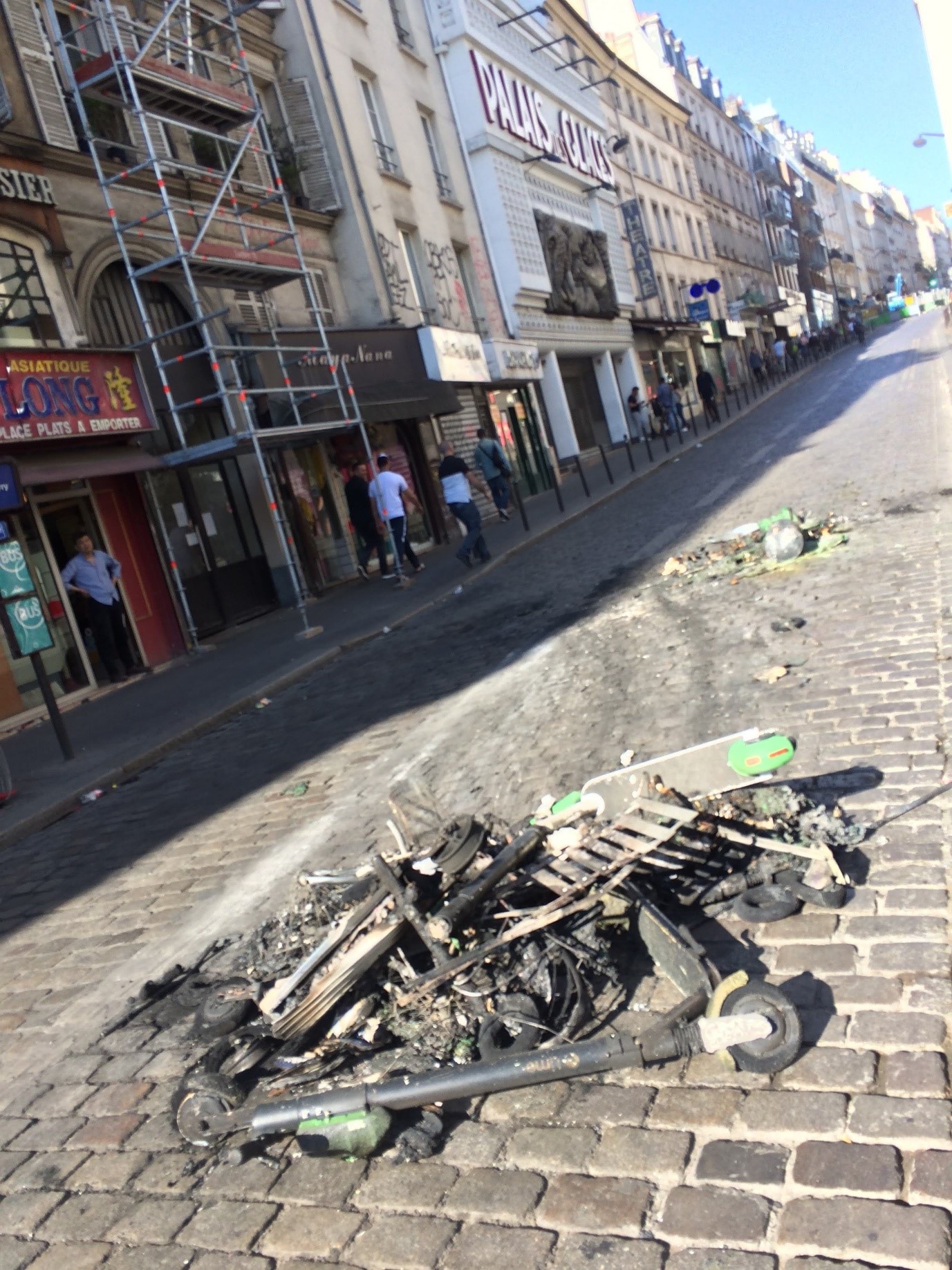 值得注意的是,共享滑板車跟無樁共享單車一樣有隨意停放問題,目前歐洲許多政府都有規畫專屬的停車格。另外,還有廢棄物處理問題,巴黎許多共享單車、滑板車,遇到抗議或是大型集會(如足球比賽)後,常常被拿來當路障或是抒發情緒的工具,一整排車被燒毀,或是丟入塞納河中,使得市府還要跟廠商協調出一部分清理費用。