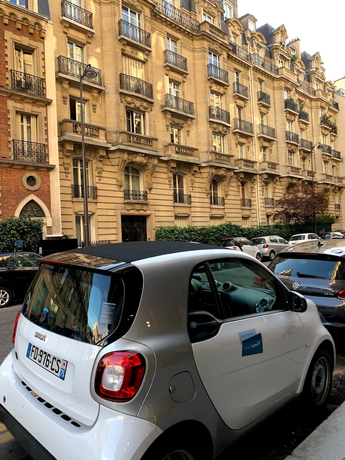 截至目前為止,全巴黎約有1300台共享汽車。這些共享汽車由私人公司管理,租還地點彈性較大,只需停在充電器旁的停車格即可,費率約每分鐘0.24-0.3歐元 (約為7.5-10台幣),或每小時6歐起跳(約台幣180)。
