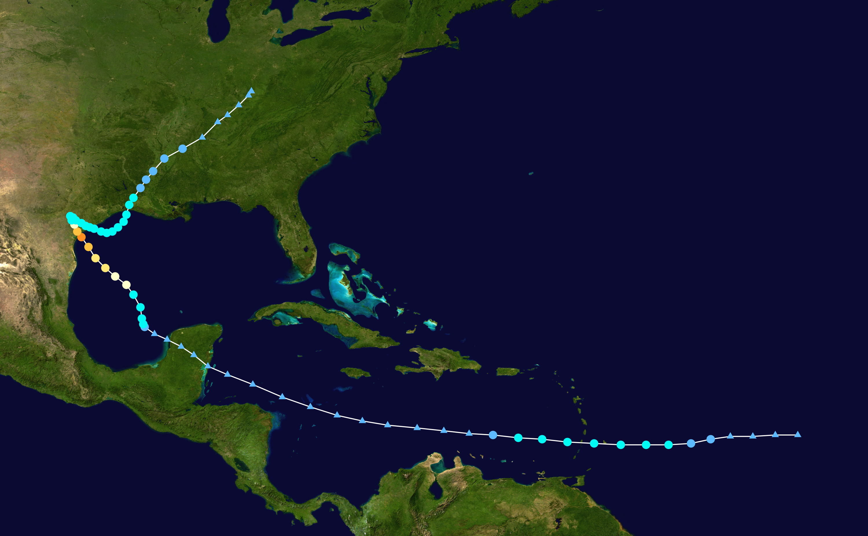 2017年颶風哈維在大西洋水域上空時,只達熱帶風暴強度(約等於輕度颱風),穿越尤卡坦半島時甚至減弱為熱帶低氣壓,但來到墨西哥灣上空時就迅速增強,在短短2天內就成為四級颶風(約等於強烈颱風)。同年的瑪麗亞颶風更是在18小時內從一級升到五級。
