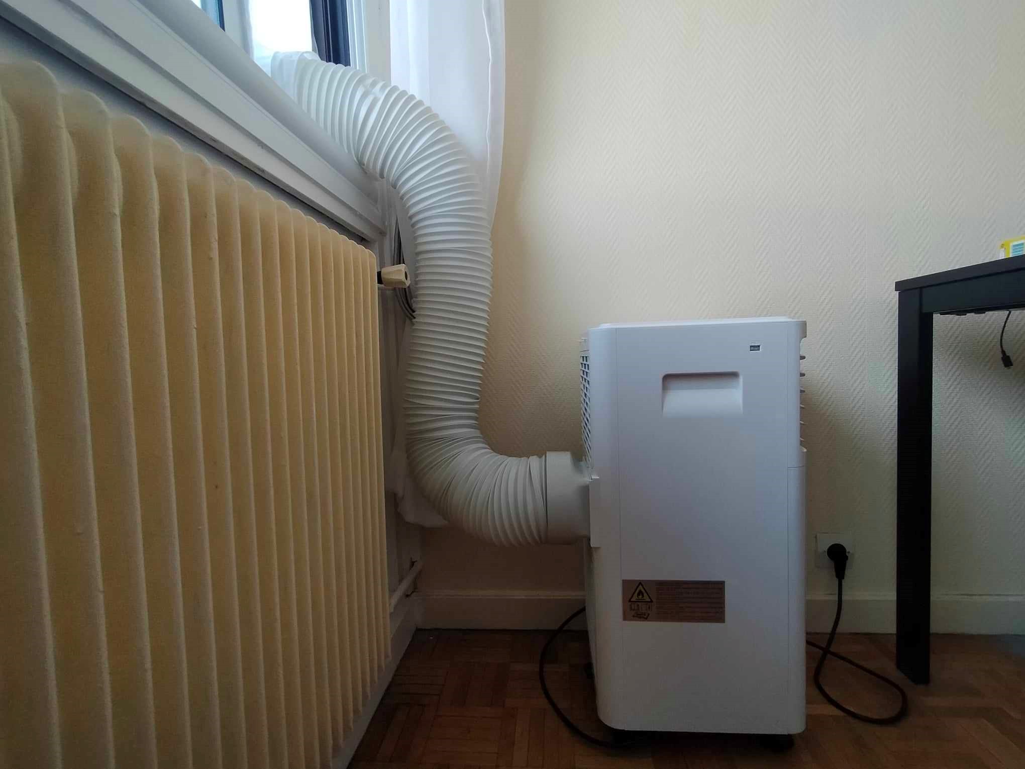 在法國家庭安裝可移動式冷氣,不需在外牆安裝分離器。但需要接通風排氣管,降溫效果也不如固定式冷氣。攝影:謝易達