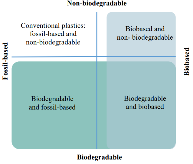 根據歐盟環保署定義:生物基(bio-based)塑膠指生產所使用的(部分)原物料來自生物質(biomass),例如糖、澱粉或植物材質等,而非以石油為原料。生物可分解(biodegradable)塑膠則指特殊環境下,塑膠可被生物自然分解,然分解所需的條件與時間不一。