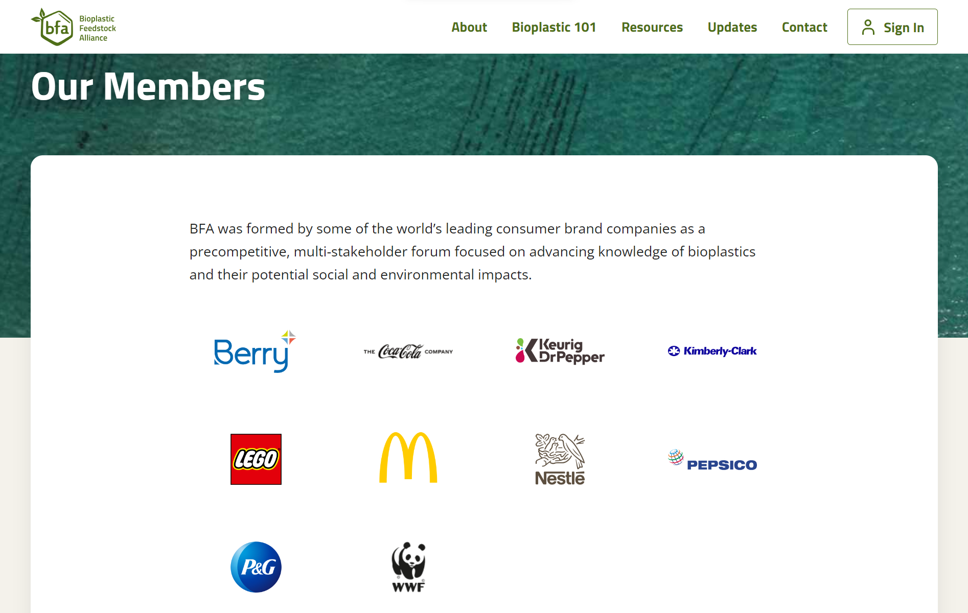 國際組織「生物塑膠原料聯盟」由「世界自然基金會」發起,目前已獲得部分國際企業響應,在其生產線中引入生物基塑膠取代傳統塑膠。圖片來源:擷取自Bioplastic Feedstock Alliance