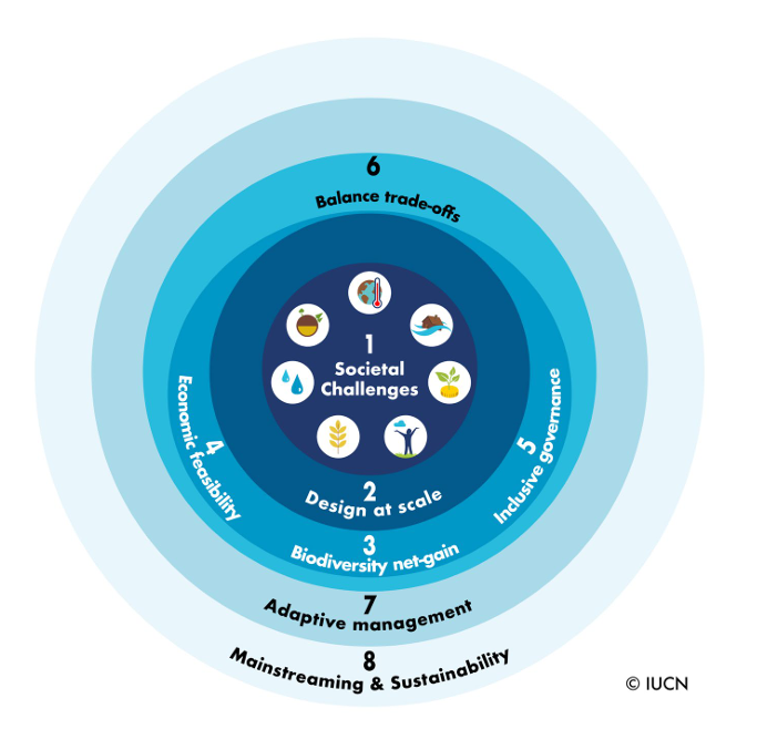 IUCN於2020年所發布的《全球自然解決方案標準》(Global Standard for Nature-based Solutions),提供8個具體標準及28項指標,引導NbS的利害關係人從設計、執行到評估階段中進行自我評估,以擴大NbS正面影響、防止任何對環境及社會的負面衝擊,並有助於進一步引導資金與決策。