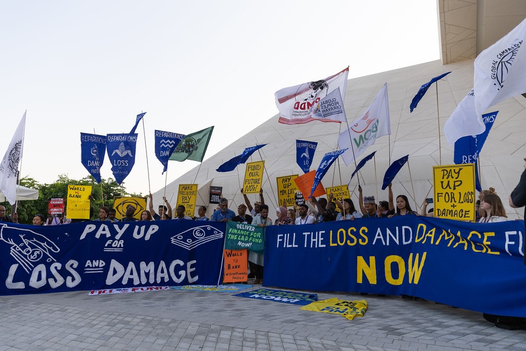 COP28會場外,群眾呼籲為損失與損害提供充足基金。圖片來源:UNclimatechange/Flickr(CC BY-NC-SA 2.0 DEED)