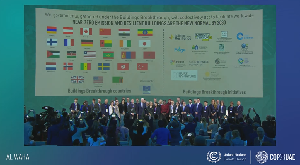 Global Alliance for Buildings and Construction(2023年12月6日),THE BUILDINGS BREAKTHROUGH: GLOBAL PUSH FOR NEAR-ZERO EMISSION AND RESILIENT BUILDINGS BY 2030 UNVEILED AT COP28