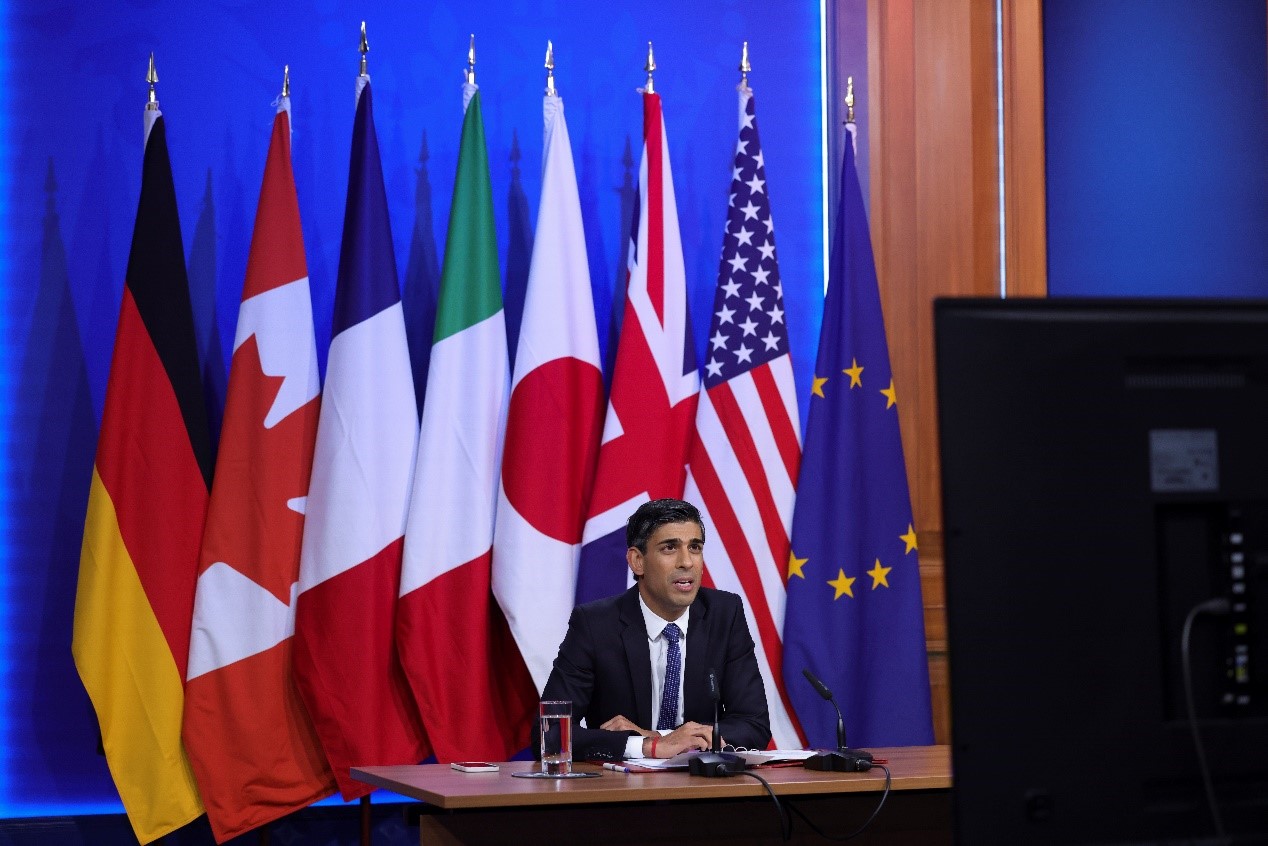英國在G7國家的減碳速度位居前哨。圖為英國首相蘇納克。照片來源:Number 10/Flickr(CC BY 2.0 DEED)