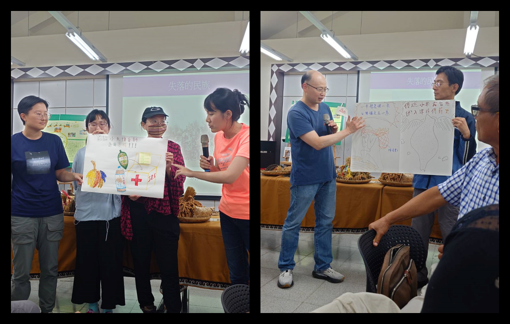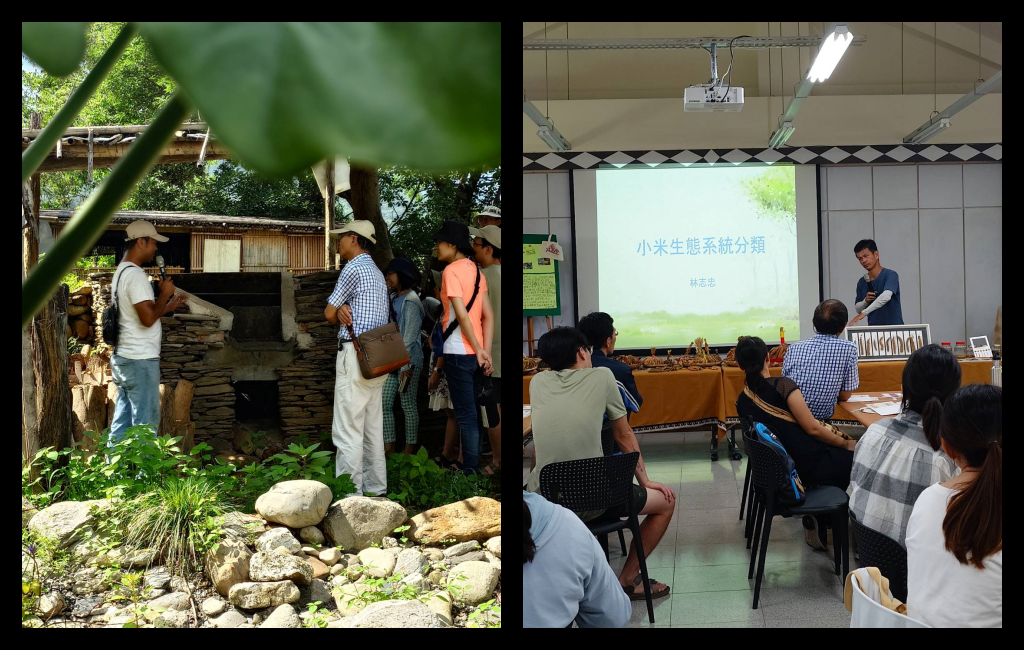 左:深活共構帶領大家了解原住民傳統文化。右:林志忠老師分享他多年來的小米研究報告。攝影:王人平
