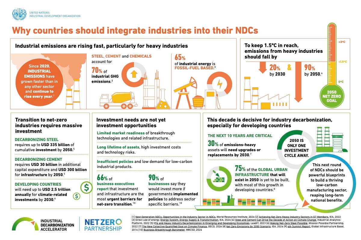 聯合國工業發展組織呼籲各國的NDC3.0必須納入工業減碳策略。資料來源:UNIDO