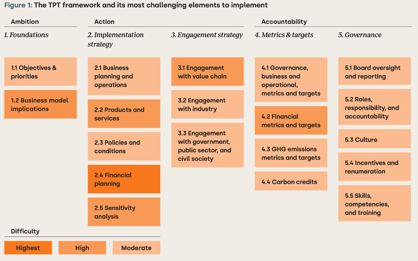 轉型計畫架構及其最具挑戰性的實施要素,資料來源:WBCSD