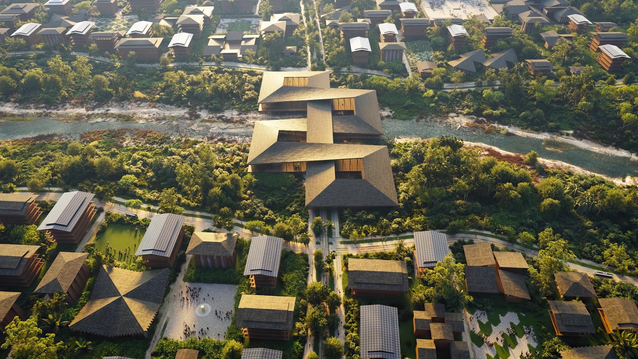構想中,這是一座以低矮建築為主、圍繞著木橋網絡建造的城市;每座橋樑都連結重要設施,包括大學、醫院、水耕溫室、文化中心、靈修中心和有機市集。這個城市不允許設置污染產業,此外,街道上所有車輛均為電動車、全面禁用一次性塑膠製品。