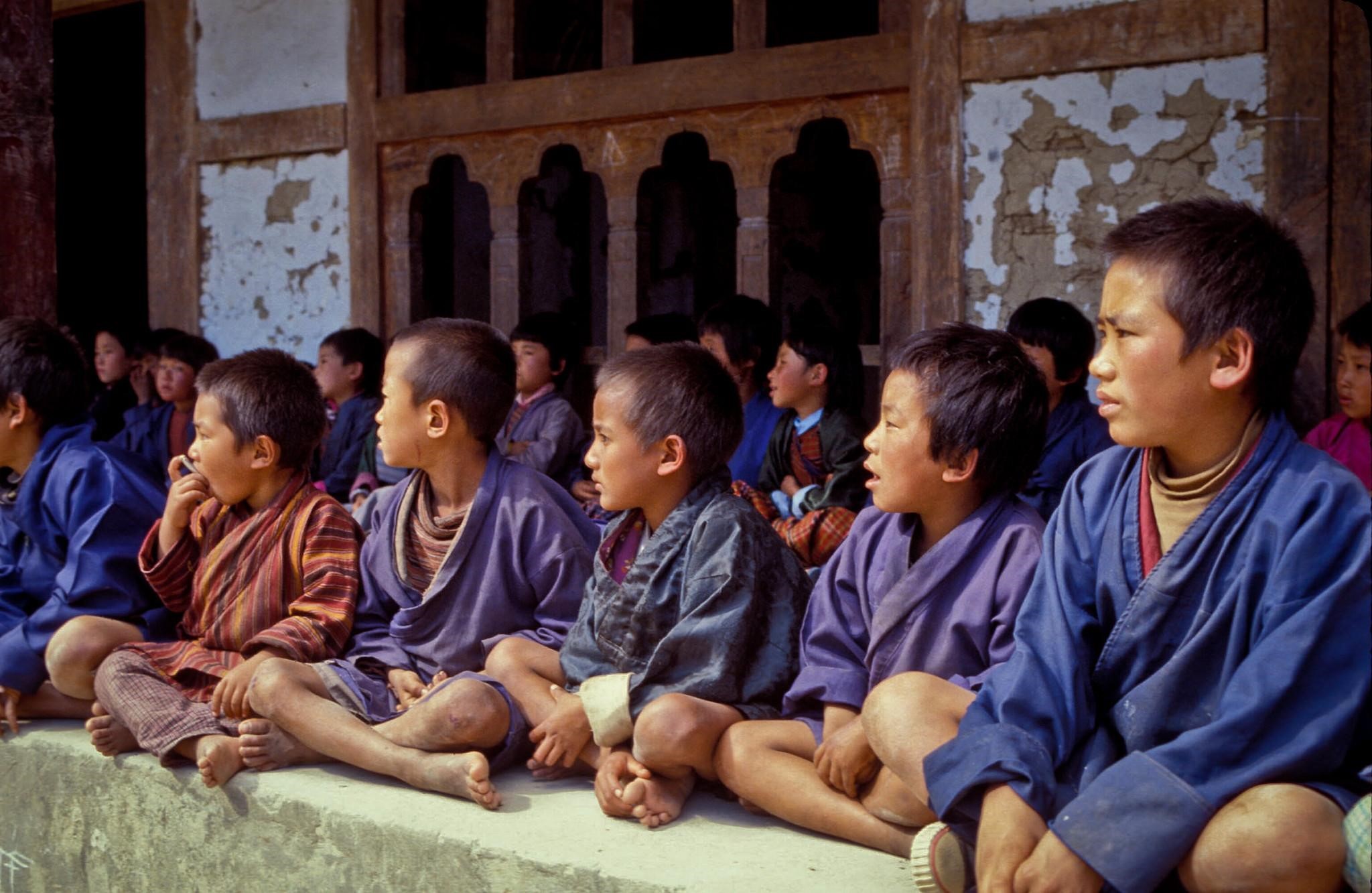 《時代雜誌》報導,每八名不丹人就有一人陷於貧困。世界幸福報告作者之一、牛津大學教授奈維(Jan-Emmanuel De Neve)認同不丹轉型,因為經濟發展到一定程度才有幸福感。不丹調查中也能看見,最快樂的人往往也是最富有的一群。圖為不丹學童。圖片來源:ADB/Flickr (CC BY-NC-ND 2.0)