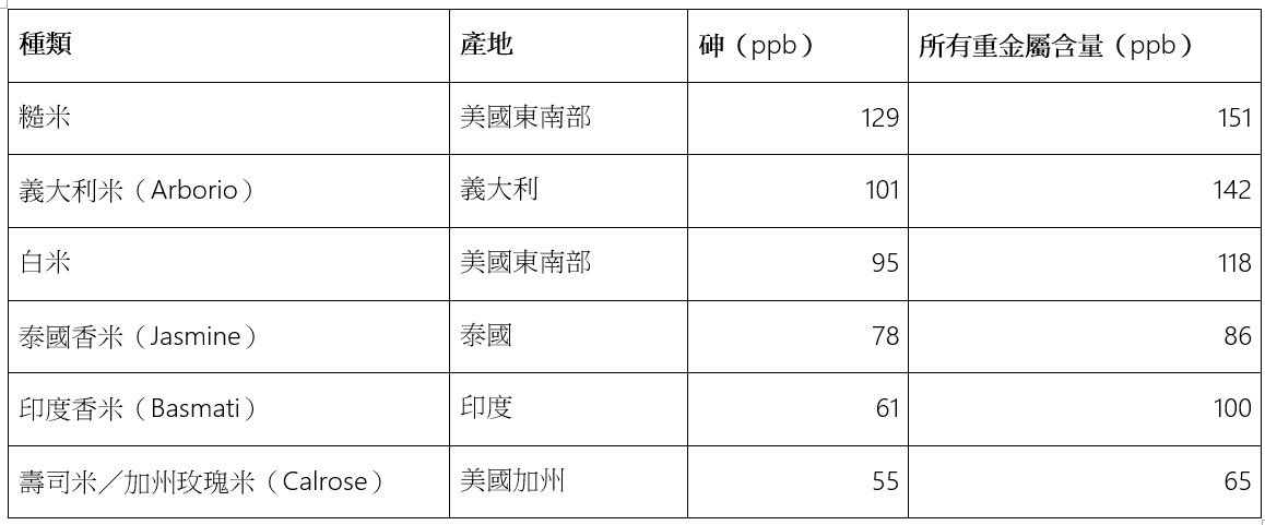 今年5月,美國一家關注嬰幼兒健康的非營利組織(Healthy Babies Bright Futures, HBBF)發表的報告顯示,抽樣調查中的美國市售米全部都含有砷,約三分之一樣本的無機砷濃度更超過美國食品藥物管理局建議的嬰幼兒食品上限濃度,引發關注。