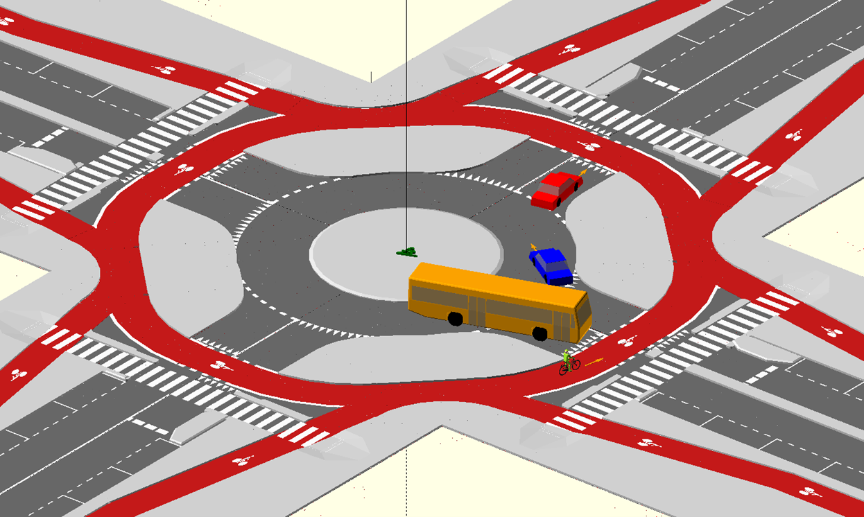 保護式十字路口的設計要點,在於利用轉角安全島有效分隔一般的車道與自行車道,同時運用多重號誌燈控制車流行進。在此設計下,汽車駕駛轉彎時被迫要減速慢行,也因為行人與自行車騎士能行進到前方等候區、擁有更高的能見度,進而大幅降低事故風險。