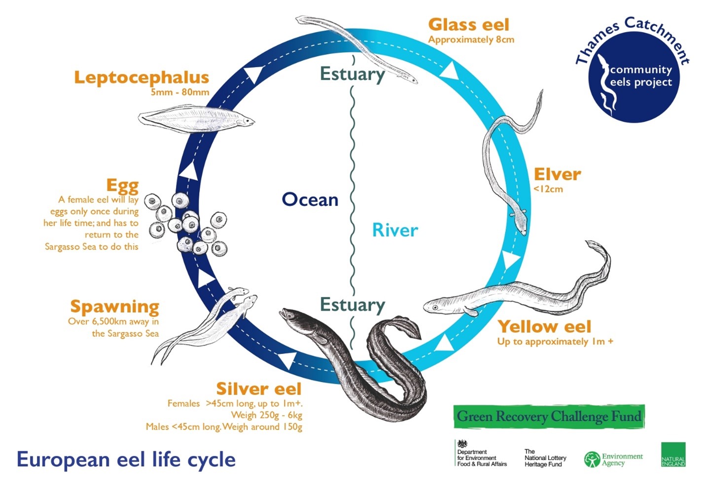 鰻魚生命週期。圖片來源:Thames Rivers Trust